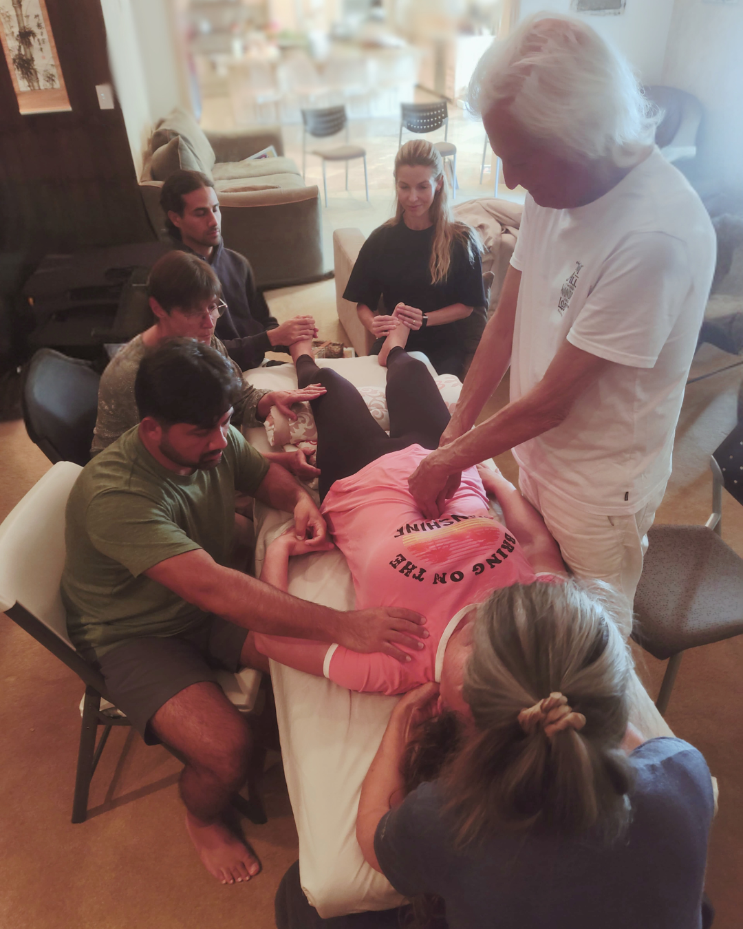 We hold specific acupressure points and support communication within our body systems. As connection increases, our body responds in perfect timing. Whatever arises is on our altar for transformation. Through masterful facilitation we have opportunities to heal what we are ready to lovingly and willingly endure.
